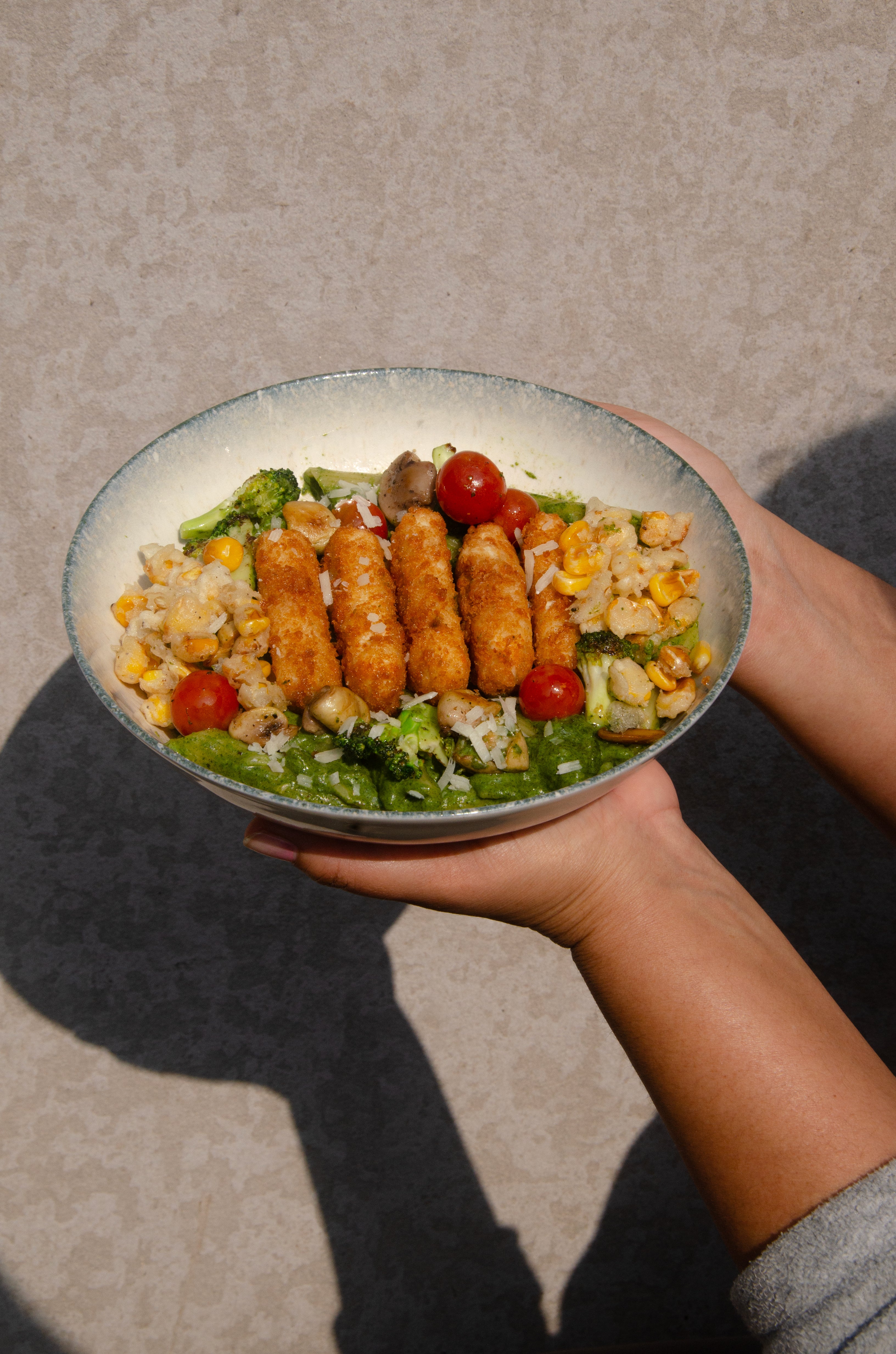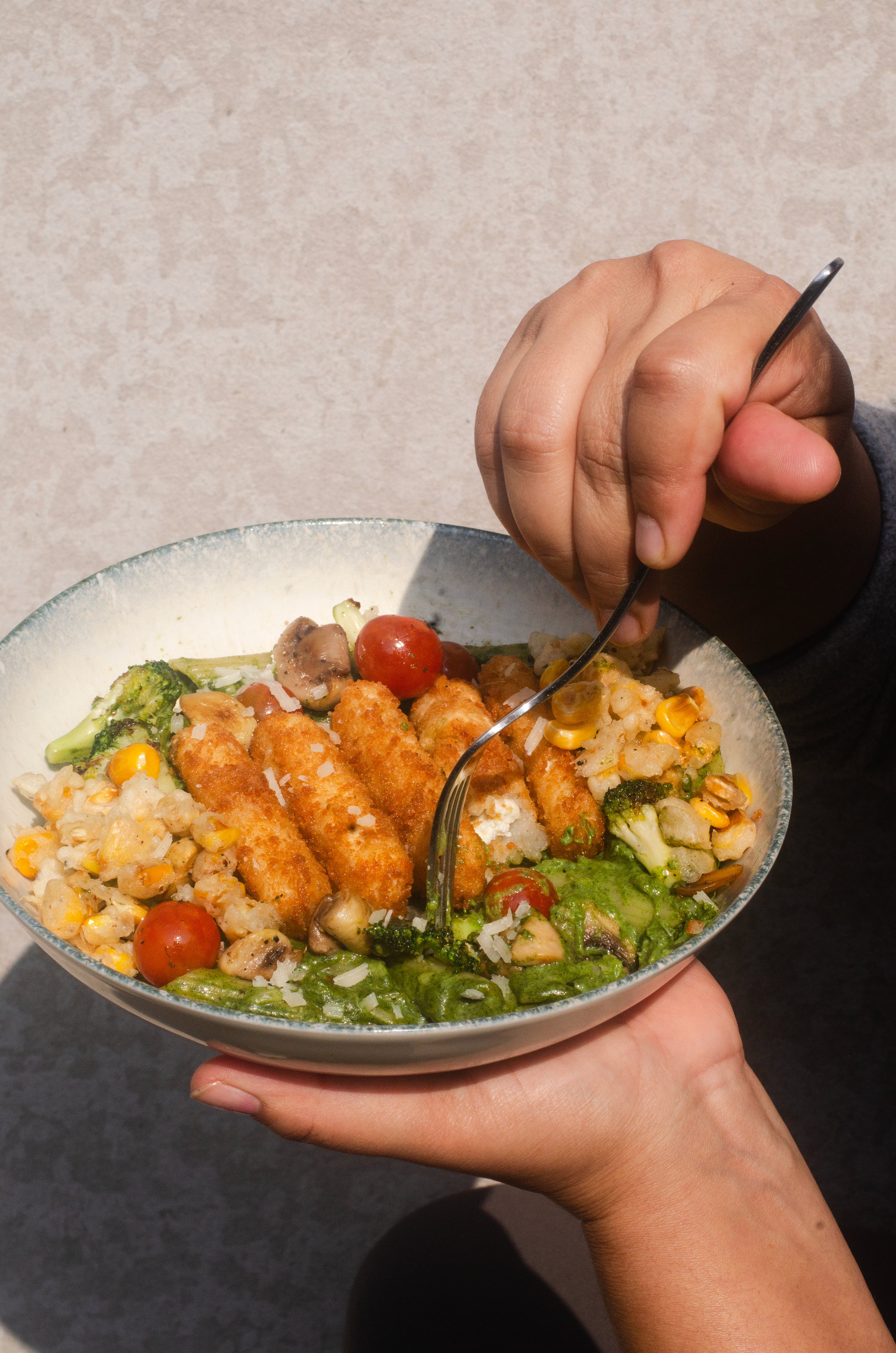 A hearty bowl of grains, fresh vegetables, and crunchy toppings — wholesome and satisfying.